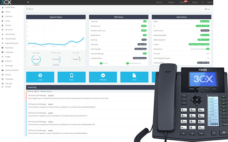3CX is a software-based, open standards IP PBX that offers complete Unified Communications, out of the box. 3CX can satisfy your day-to-day communications needs. From receiving calls while out of the office, to boosting agent productivity, face-to-face meetings and much more.